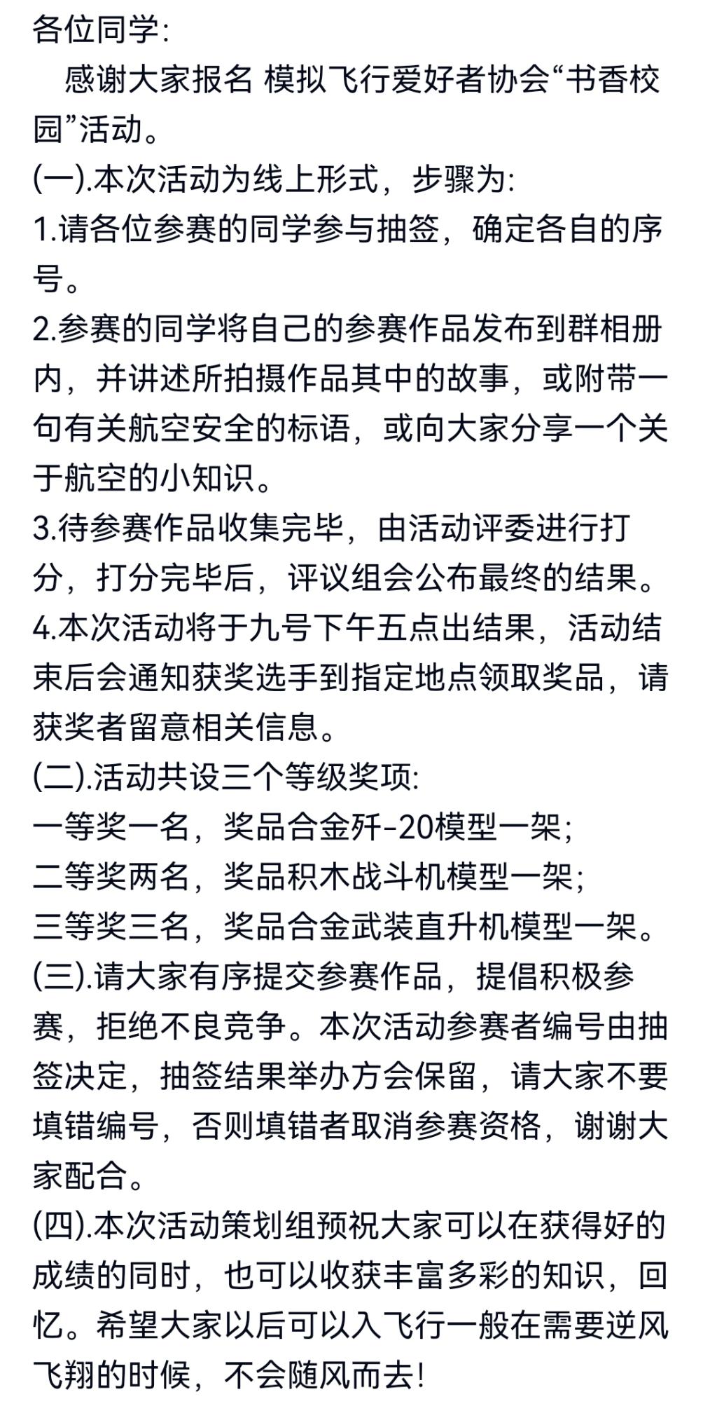 本次活动以模拟飞行爱好者协会为平台推动航空科普活动,让同学们主动了解航空知识,对航空事业各方面的发展历程与成就有更加深刻的认识,鼓励学生为航空事业发展奉献青春力量。