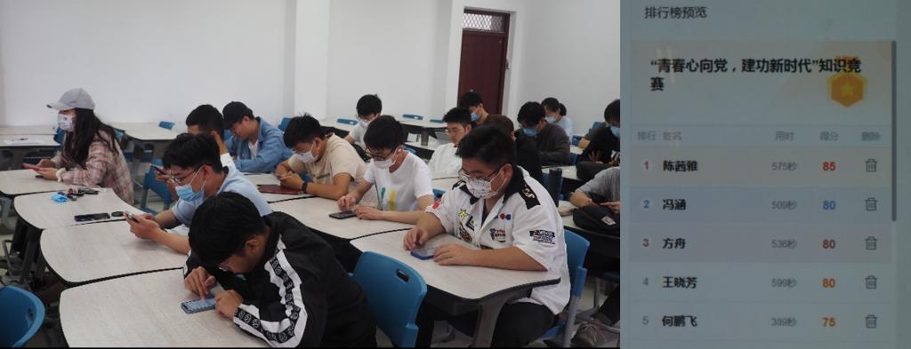 活动以“青春心向党 建功新时代”为主题,主要包含三个方面的内容。一是通过集中学习、沙龙研讨、交流讨论等形式学习贯彻习近平总书记在庆祝中国共产主义青年团成立100周年大会的重要讲话精神,在团员青年中充分展开学习讨论,掀起学习贯彻热潮。二是通过观看视频、座谈会等形式学习习近平总书记考察调研中国人民大学时发表的重要讲话以及给中国航天科技集团空间站建造青年团队回信,结合专业学习情况,组织团员青年展开热烈讨论。三是开展“青春心向党 建功新时代”知识竞赛,通过在线答题的方式帮助团员进行党史、团史知识学习,对竞赛中获奖学生进行表彰,提高广大团员青年学习党史、团史的积极性。活动结束后,学院团委组织开展了5月主题团日评比活动。经评比,研究生交运211团支部、交运201团支部、机械212团支部分别获得一、二、三等奖。