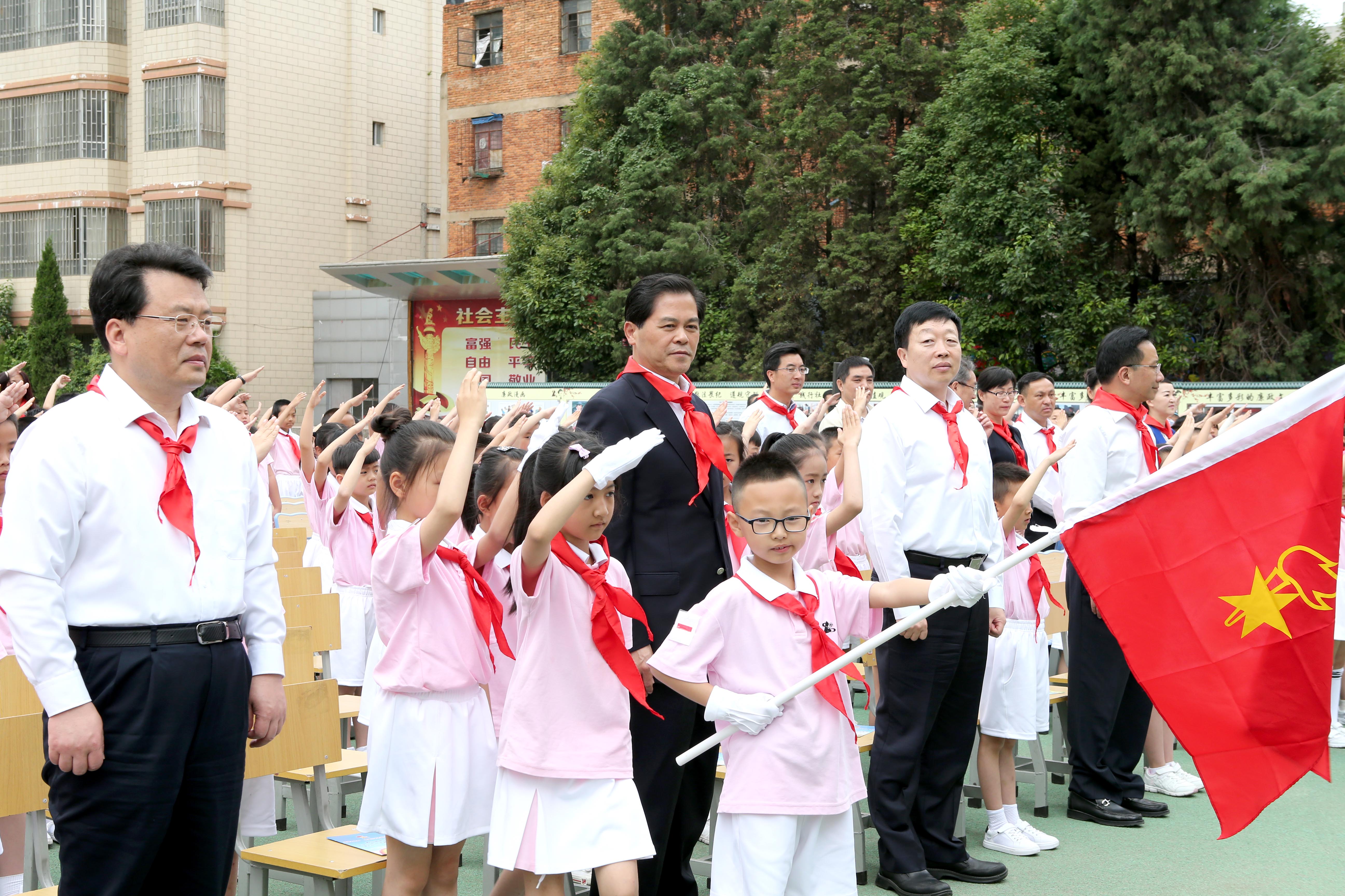 操场上,队旗飘扬、歌声嘹亮,28名新队员系上红领巾,在队旗下宣誓,光荣加入中国少先队。仪式中,陈豪看到少先队队伍不断壮大十分高兴,他说,加入中国少先队、加入中国共青团、加入中国共产党是人生大事。今天,你们光荣入队,少年先锋队教育由此开启,希望你们扣好人生第一粒“扣子”,努力实现誓言——准备着,为共产主义事业贡献力量!