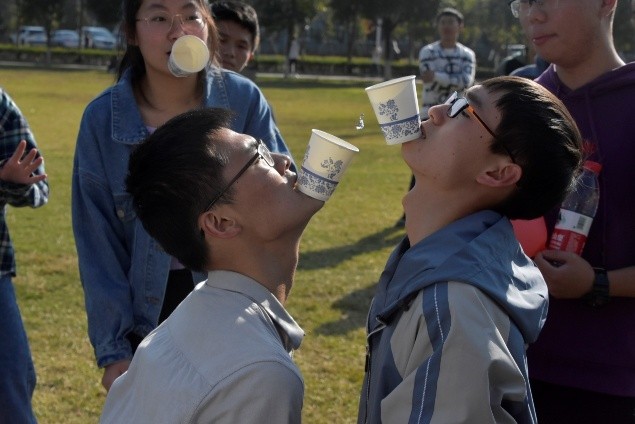 本次运动会以十人小组为单位展开比拼,包括了“无敌风火轮”,“心心相印”、“纸杯传水”、“筷子夹球”等共计5个项目。比赛过程中,同学们团结协作,配合默契,充分发挥了自己的优势,成功完成了各个项目的比拼。场边观众同样激动不已,有加油鼓气的,有欢呼喝彩的,现场热闹非凡。短短三个小时的活动中,掌声、笑声、喝彩声此起彼伏,精彩纷呈。