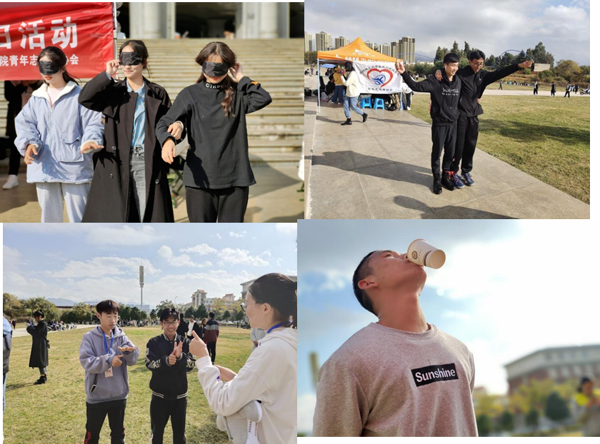 本次活动以摊位游戏的形式吸引广大学生参与到活动中来。活动设置了眼盲心明、“手”卫未来、知“足”常乐、手语传情以及书写祝福5个环节,让参与同学身临其境,体验残疾人士日常生活中面临的困难,自发地参与到关爱残疾人士的行列中。活动现场,同学们踊跃报名,志愿者们带领大家一同体验了残疾人士的世界。游戏结束后,大家一起分享活动过程中的点点滴滴,表达对残疾人士浓浓的敬意,书写对他们的满满关爱和衷心祝福。