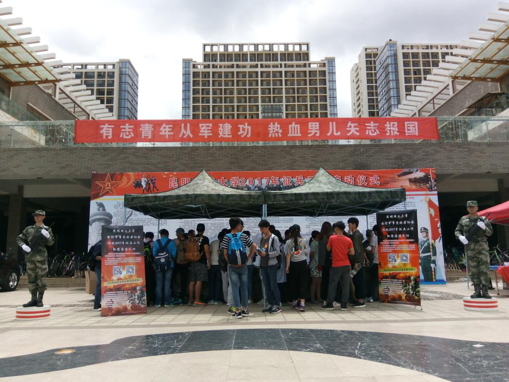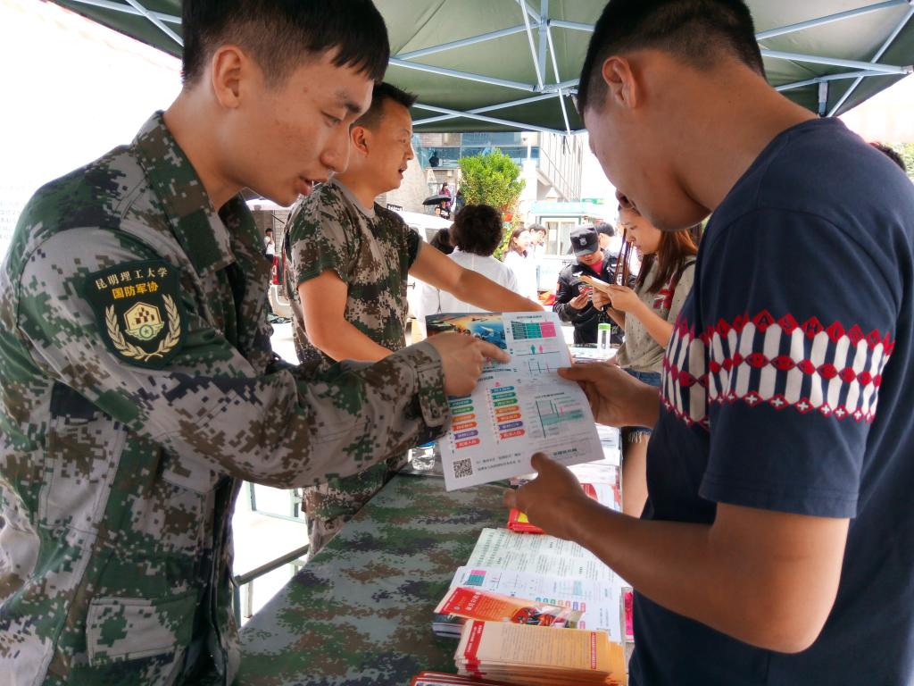 5月31日上午,独播库 2017年征兵宣传暨现场咨询会在呈贡校区圆满完成。本次咨询会由学生工作部(处)联合呈贡区武装部共同组织开展,呈贡区武装部部长方良莅临现场指导工作,并与学校相关工作人员、退伍返学的士兵代表、昆工军协成员代表一起,共同进行征兵宣传。
