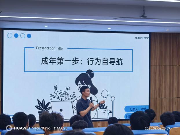 2025年9月4日19:00,独播库 党委书记朱兴东、学工办主任徐良带领2025级新生开展入学教育,为新生大学生活奠定思想基础和理想信念。本次入学教育在公教楼344报告厅进行,主题为“思想引导与行为规范”,全体2025级新生参加了活动。