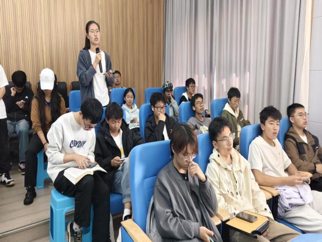 2022级优秀学生代表刘琪、王楠、姚佳怡、李佳蕊结合自身专业背景和成长经历,从保研准备、科研入门、竞赛拼搏、学习方法以及学业生活平衡等维度分享了宝贵经验。现场交流踊跃,新生们在互动中对大学四年的发展规划有了更清晰的认识。
