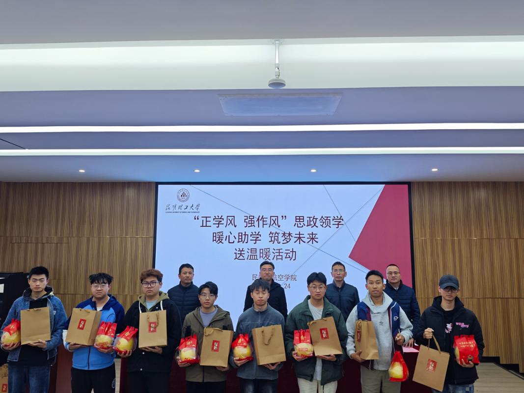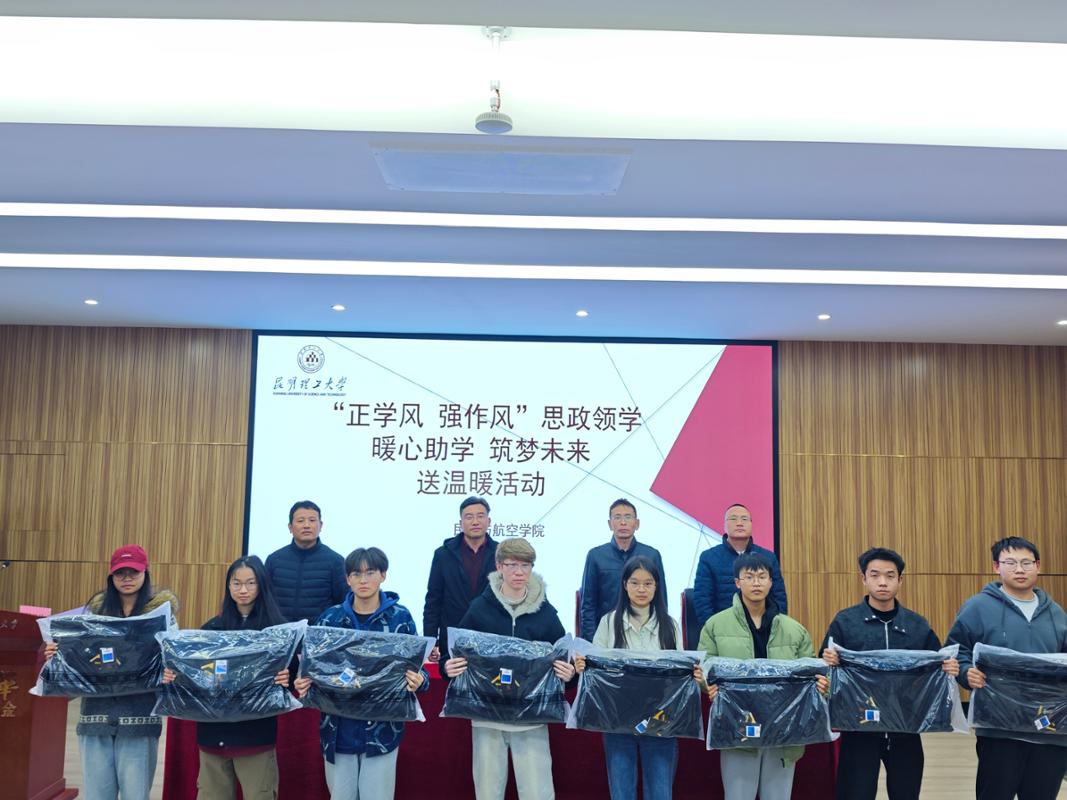 紧接着,迎来了温馨的物资发放仪式。学院领导向2022级考研学子、2025级新生颁发了精心筹备的温暖礼包,礼包中包括考研学习物资、冲锋衣、毛毯等实用物品。