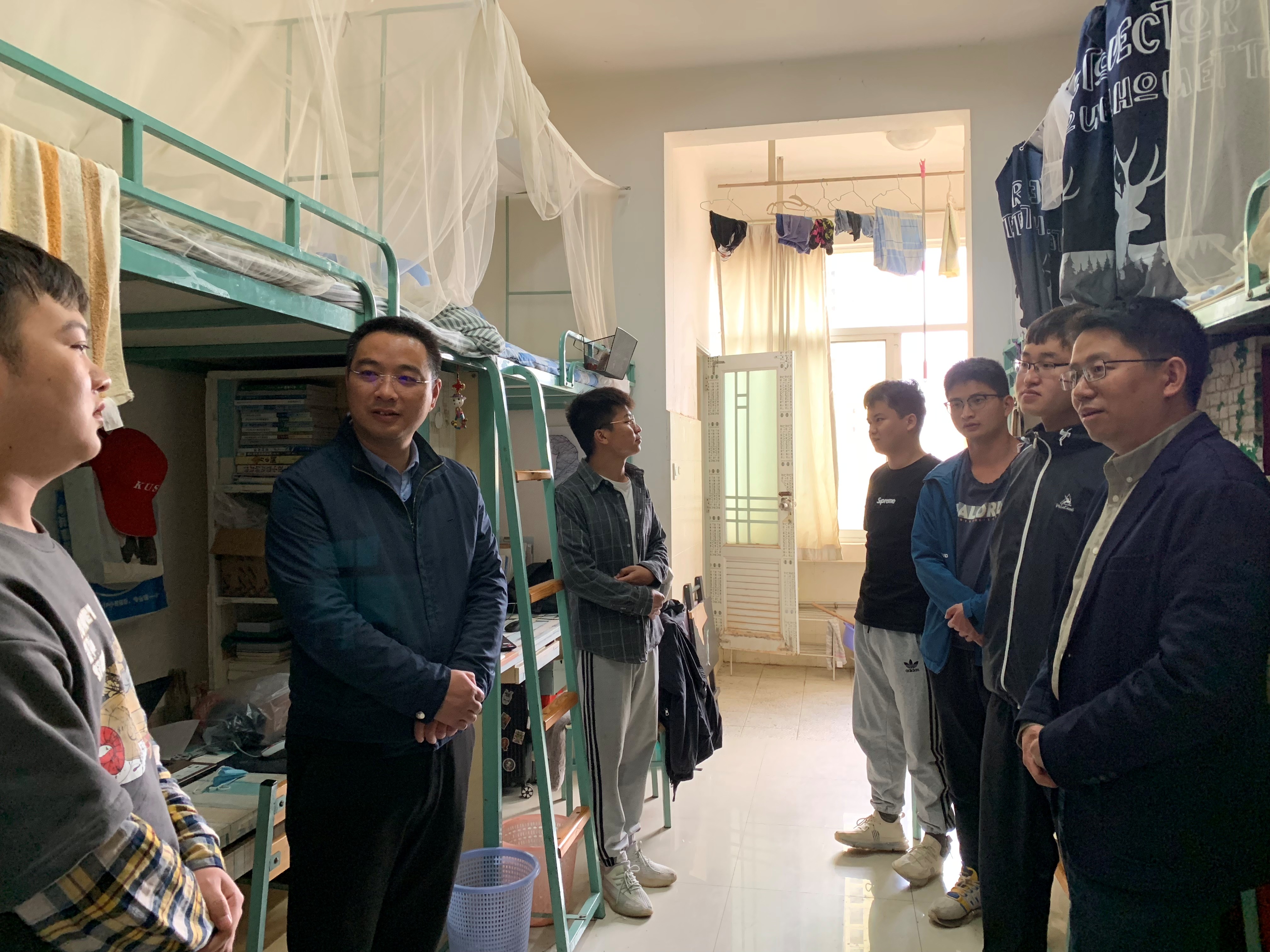 3月1日,新学期开学,独播库 院长吴建德、党委副书记周业林以及辅导员来到学生宿舍看望返校学生。