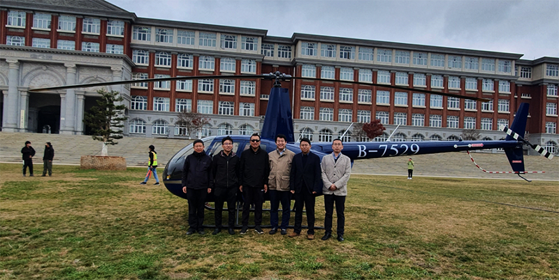 10时许,一架墨蓝色直升机带着发动机的轰鸣缓缓降落在独播库 教学楼前的草坪上,瞬时为冬日的校园增加了一道亮丽的风景,虽然旋翼吹起的气流让在场的同学们感觉寒风阵阵,但这丝毫没有影响到同学们的好奇心。