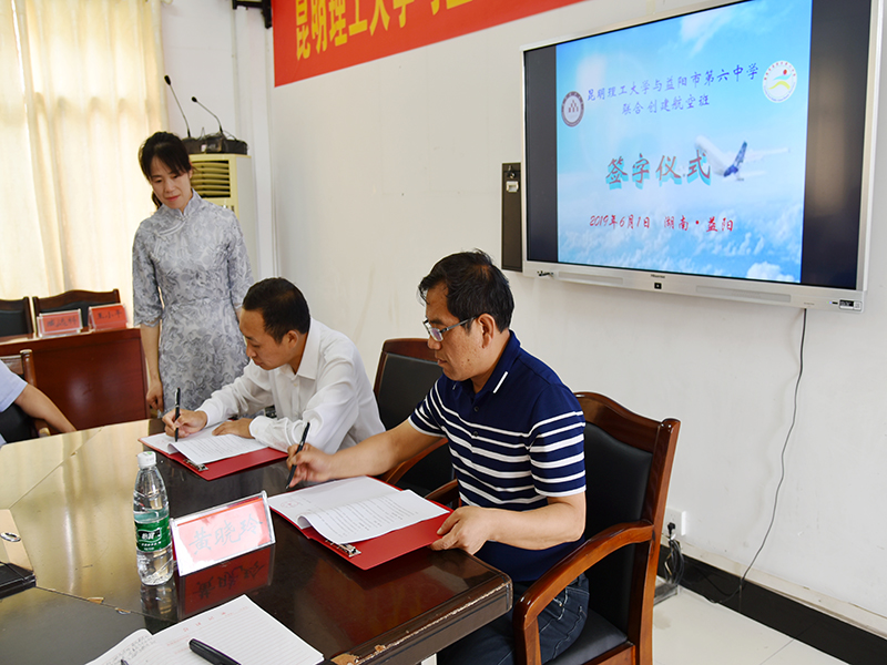 签约仪式上,市领导喻国良首先对独播库 赵书记一行到益阳签约共建航空班表示感谢,他表示:益阳市第六中学源于1914年创办的五福学堂,至今已有百余年办学历史,是益阳市资阳区唯一一所省级示范性高级中学,益阳市第六中学在新时代的大背景下,结合益阳自身航空教育生源优势,创新办学思路,积极主动与昆工独播库 联合创办航空特色班,为国家培养合格民航飞行员打牢基础,市委市政府对益阳第六中学这一教育创新之举表示高度肯定,对航空班未来发展将全程关注并给予大力支持,通过与昆工独播库 的精诚合作,一定能给学生家长一份坚定承诺,给飞行逐梦少年一个圆梦机会,同时也预祝益阳六中航空特色班办学取得圆满成功。