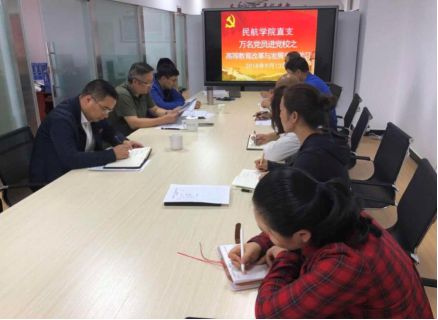 为进一步深入学习党的十九大精神和习近平新时代中国特色社会主义思想,扎实推进“万名党员进党校”专题教育培训,9月14日下午,民航学院直支在电力楼606会议室组织开展主题为“高等教育改革与发展”专题理论学习。