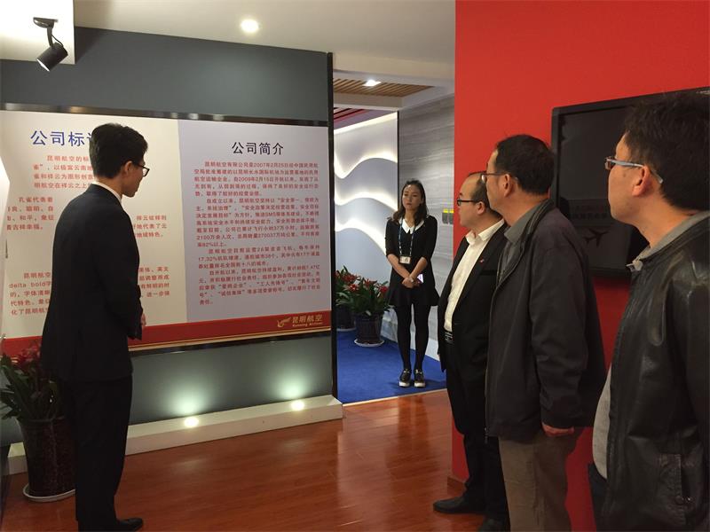 在听取航空学院介绍后,昆航人力资源部杨金龙总经理和机务维修部薛尚斌经理都对省内联合培养航空人才产生了浓厚兴趣,并表达了加深了解、合作共赢的意愿。与此同时,双方商定近期实现互访并进一步加深和推进多方面合作。会后,在昆明航空行政事务室李芳芳经理的陪同下,沈颖刚常务副院长一行参观了昆明航空的文化展厅。