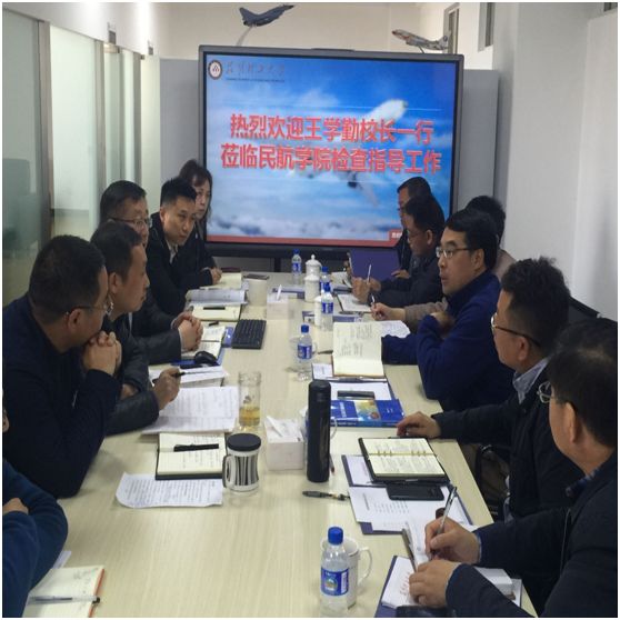 在仔细听取民航学院主要负责人关于学院筹建和飞行技术专业申报情况后,王校长充分肯定了民航学院各项工作取得的成绩,并对民航学院后续发展寄予厚望。他指出,刚刚获批的飞行技术专业肩负培养特殊行业高素质人才,涉及学科面广、纪律要求严等,民航学院要认真研究,利用现有优势和基础,打造办学治院特色和亮点,努力提高人才培养质量。同时,民航学院要加快推进校地、校企、校校等对外合作交流,统筹近期效益与远期效益相结合,积极争取更多办学优势资源,落实好学院建设发展和飞行技术专业人才培养各项工作,为学校“双一流”建设作出新的贡献。