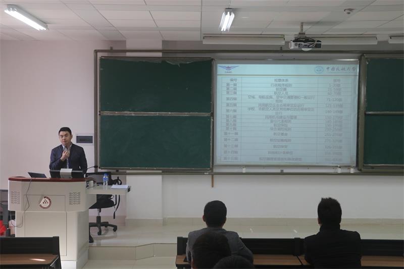 为使同学们更加了解机场航空方面知识,帮助大家明确今后的就业方向,航空学院特邀中国民航大学航务研究所主任、飞行签派员训练中心副主任王岩韬老师于12月28日在公教楼344教室为我院交通运输和物流工程专业的同学们开展以“民航空管、机场、航空公司运行业务漫谈”为主题的专题讲座,朱兴东副书记出席并主持了讲座。