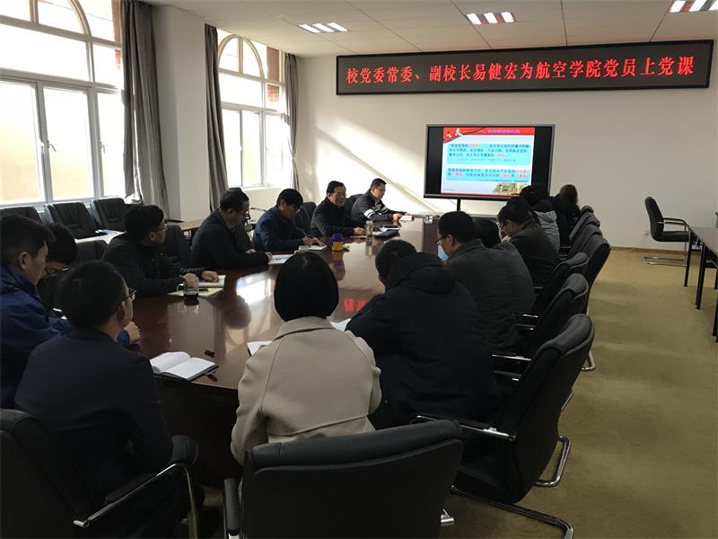 2017年12月29日上午,校党委常委、副校长易健宏到航空学院给党员上党课,学院全体党员参加。