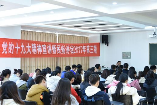 樊教授从多角度阐述了党的十九大盛况空前,用“三个意味着”讲解了中国特色社会主义进入新时代在中华民族发展史、世界社会主义发展史、人类社会发展史上的重要意义,以“14个坚持”、“以人民为中心”等多方位呈现了党的十九大丰硕成果。樊教授最后结合党的十九大精神,勉励学院师生要不忘初心、牢记使命,要敢于担当、有目标、有理想,要学好专业、练就本领,不负韶华。