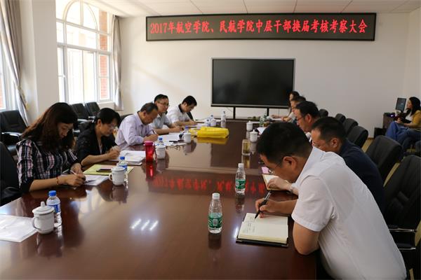6月9日下午1:30分,航空学院、民航学院干部考察考核工作会在航空学院335学术报告厅举行,航空学院及民航学院筹备组18位老师参加考察考核工作会,校党委常委、副校长、学校第七考核组组长杨斌,副组长赵永华一行5人到会考核考察指导,会议由常务副院长沈颖刚主持。