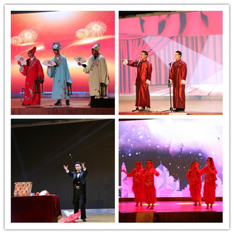 乐起舞动,激情四射的开场舞调起了全场气氛,晚会伊始就给了在场观众一种震撼。紧接着各种节目轮番登场,异彩纷呈,魅力四射,魔术《幻》将晚会带入了第一个高潮,相声《你想成功吗》开启了晚会的第二篇章,同学们用不一样的方式展示了各班级风采。在主持人的邀请下,学院党政领导为本学期获得各种荣誉和奖励的同学颁发证书,并请学院党委赵耕副书记代表学院对2016级新生送去新年的祝福。