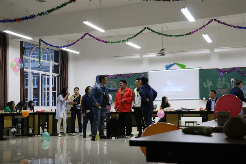 9月13日19:00,航空学院党政领导、辅导员以及各班主任到各个班级,与同学们话谈中秋、话谈大学生活、话谈人生理想。联谊会中或热情似火或沉静如水的表演中飘荡着老师们和同学们的欢声笑语,有刘增力副院长、阳照冬老师献唱的歌曲,也有熊曼辰老师精心准备的拉丁舞蹈,有同学精心编排的相声、小品、二人转、大合唱等,气氛十分热烈活泼。