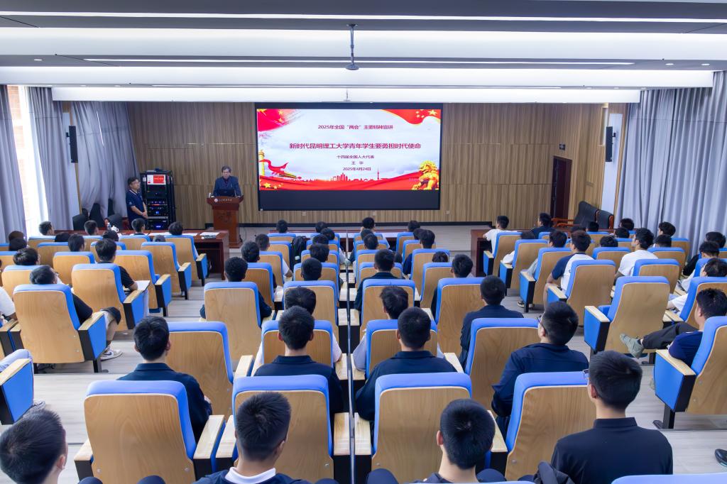 课堂上,王华结合独播库 学科特色,通过案例分享、互动问答等形式,生动阐释了新时代昆工青年学生的使命担当。他寄语学生:“生逢伟大时代,既要仰望星空,志存高远,更要脚踏实地,躬身实践。希望同学们以全国两会精神为指引,在科技创新、社会服务中勇当先锋,书写无愧于时代的青春答卷。”