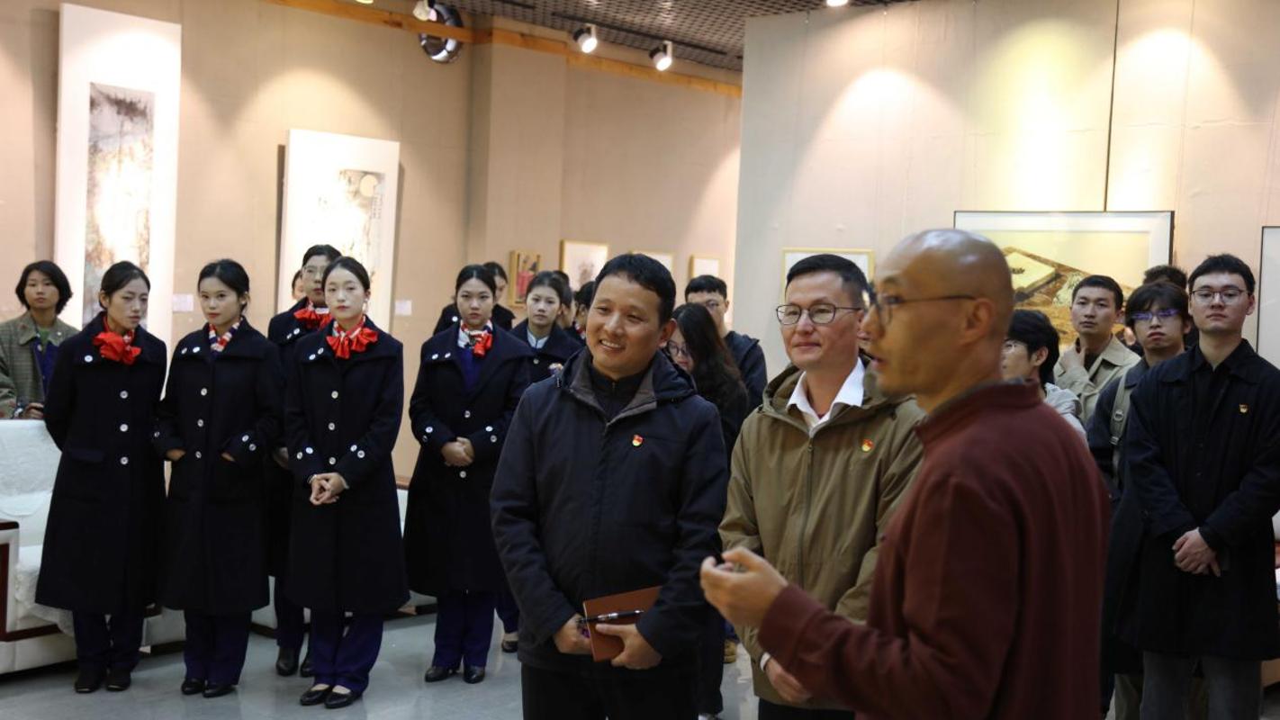 观看西南联大主题展览,观赏廉洁主题艺术作品。云南师范大学艺术学院教师王征以西南联大老一辈教授的清廉事迹为主线,为全体党员讲授廉洁文化教育专题课。展厅内,艺术创作与廉洁典故结合,使党员在欣赏中感悟老一辈教育工作者的清正廉洁品格。以黄师岳、闻一多事迹为题材创作的绘画作品,生动再现其廉洁治校的典型场景。通过王征老师的深入讲解,全体党员沉浸式体验了西南联大“清廉从教、正气育人”的精神风貌与深厚传统,进一步夯实了拒腐防变的思想道德防线。
