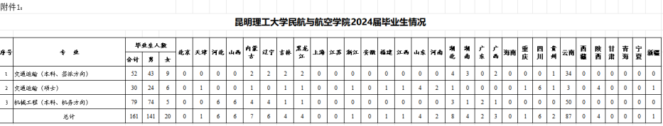2024年,我院将有航空交通运输专业学位研究生毕业生和机械工程(机务方向)、交通运输(签派方向)本科生毕业预计160余人。生源分布情况见附件1,人才培养目标及主干课程见附件2。