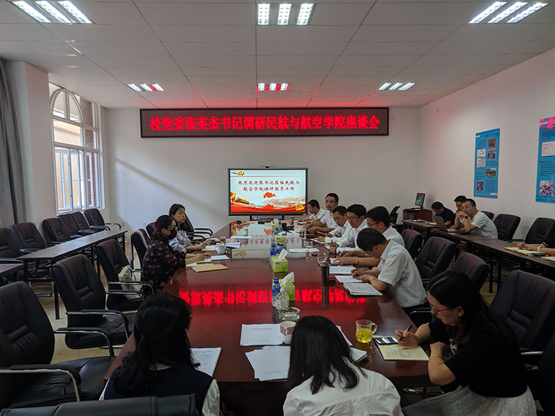张英杰书记在认真听取了汇报后,首先充分肯定了学院在积极稳步推进改革过程中所取得的成绩,重点强调了学院办学过程中,要进一步强化党的领导,扎实推进党的建设各项工作,提高学院党委政治核心和党支部战斗堡垒作用;学院专业建设方面要紧密结合民航业发展需求,进一步明晰学院发展定位和思路,变成特色、办出亮点;民航人才培养方面要进一步加强思想政治教育,全面落实立德树人根本任务。张书记还针对学院在人才培养、学科方向凝练、资质建设申请、科研团队建设等有关问题进行了具体的指导。